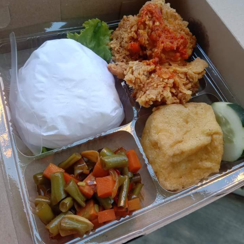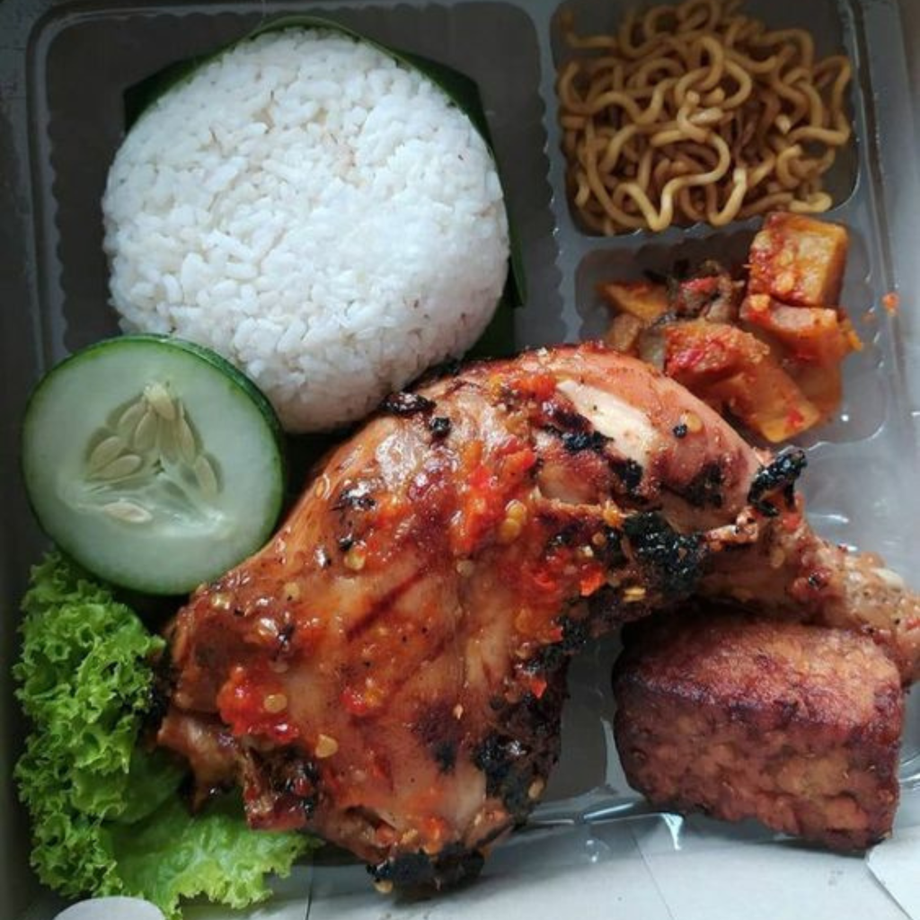 ✅ Sudah Berisi •Nasi putih •Ayam bakar •Timun •Mie kuning •Sambal
